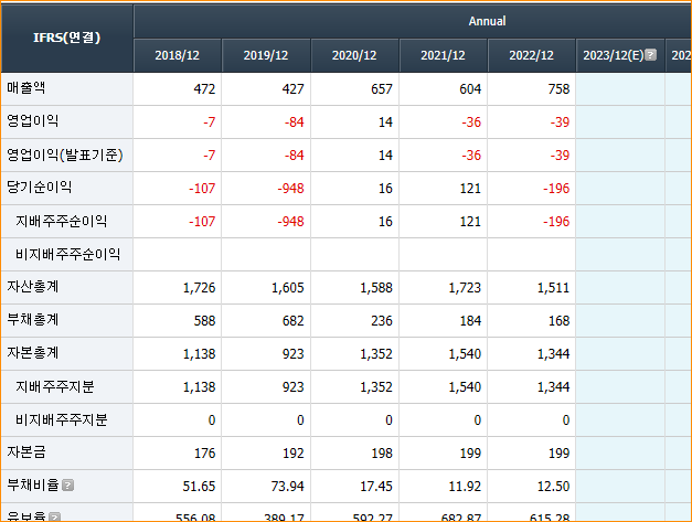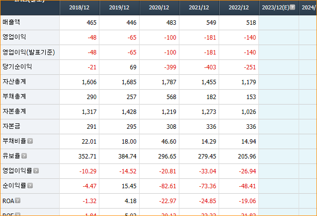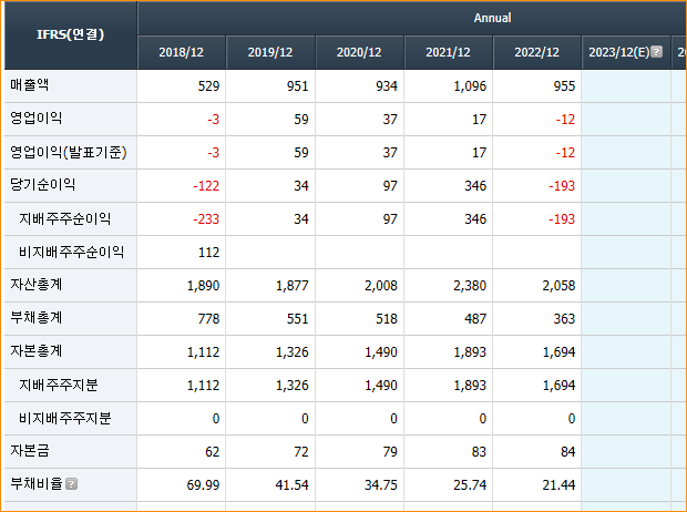 - 2022년 12월 전년동기 대비 별도기준 매출액은 5.6% 감소, 영업손실은 23% 감소, 당기순손실은 37.7% 감소. 매출 감소, 판관비 증가에도 불구하고 원가율 하락에 힘입어 영업적자 폭이 줄어듬. 고정비 절감을 위해 2021년 2월부터 위탁생산 체제로 전환했고, 인건비 부담을 줄이기 위해 영업은 판매대행사(CSO)에 맡김. 항생제 콤비신주 등 매출 비중이 높았던 제품이 올해부터 판매를 재개하고 신제품 출시를 앞두고 있음.