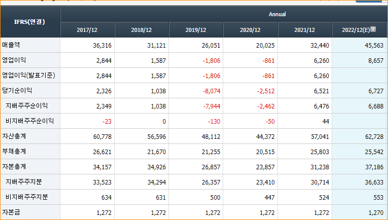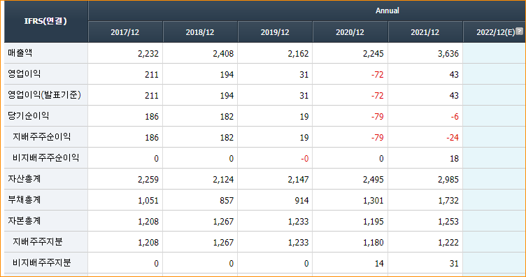2022년 3월 전년동기 대비 연결기준 매출액은 13.2% 감소, 영업이익은 68% 감소, 당기순이익은 66.1% 감소. 매출액 감소와 함께 이익률이 감소하여 영업이익과 당기순이익이 감소함. 동사가 개발한 보안카드용 PC필름은 주민등록증, 운전면허증, 전자여권 등에 사용되는 첨단소재로, 각국 정부가 발행하는 신분증에 PC 채택 비율이 증가하고 있으며 시장은 확대 되고 있음.