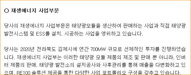 태양광 발전시설 사업 영위