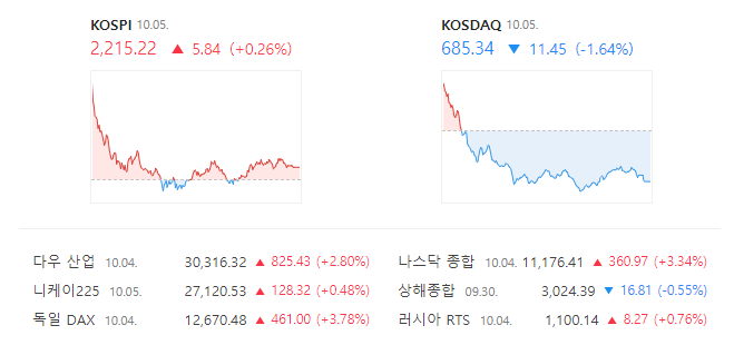 이틀 연속 큰 폭으로 상승한 미 증시의 호조에도 불구하고 차익실현 매물이 출회하며 약세 흐름을 보였습니다. 특히 코스닥 시장은 시가총액 상위 기업들 대부분 약세를 보였고, 간밤 뉴욕증시는 긴축 속도조절에 대한 기대감으로 상승 마감했습니다.