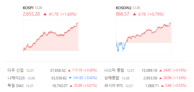 폐장일인 이날 코스닥이 상승 마감한 것은 원·달러 환율과 시장금리 하락이 투자심리에 긍정적인 영향을 미쳤습니다. 시장금리와 원·달러 환율 하락으로 외국인 투자자들에게 우호적인 투자 여건이 지속했습니다.