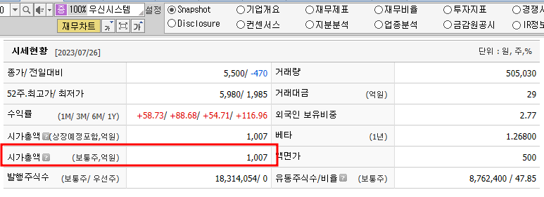우신시스템의 시가총액은 1000억원가량 이며, 2차전지 조립라인 공급계약 금액이 시가총액에 두배이상의 금액에 2차전지 관련주가 하락세를 유지한 상황에서도 상한가를 기록하며 마감하였습니다.