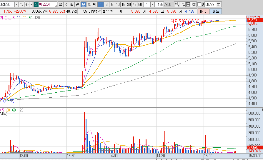 예스24(053280) 주가가 강세를 보이고 있다.8월 22일 한국거래소에 따르면, 예스24의 주가는 전일 대비 28.9% 상승한 5830원에 거래되고 있다. 예스24는 피프티피프티의 소속사인 어트랙트의 지분을 보
